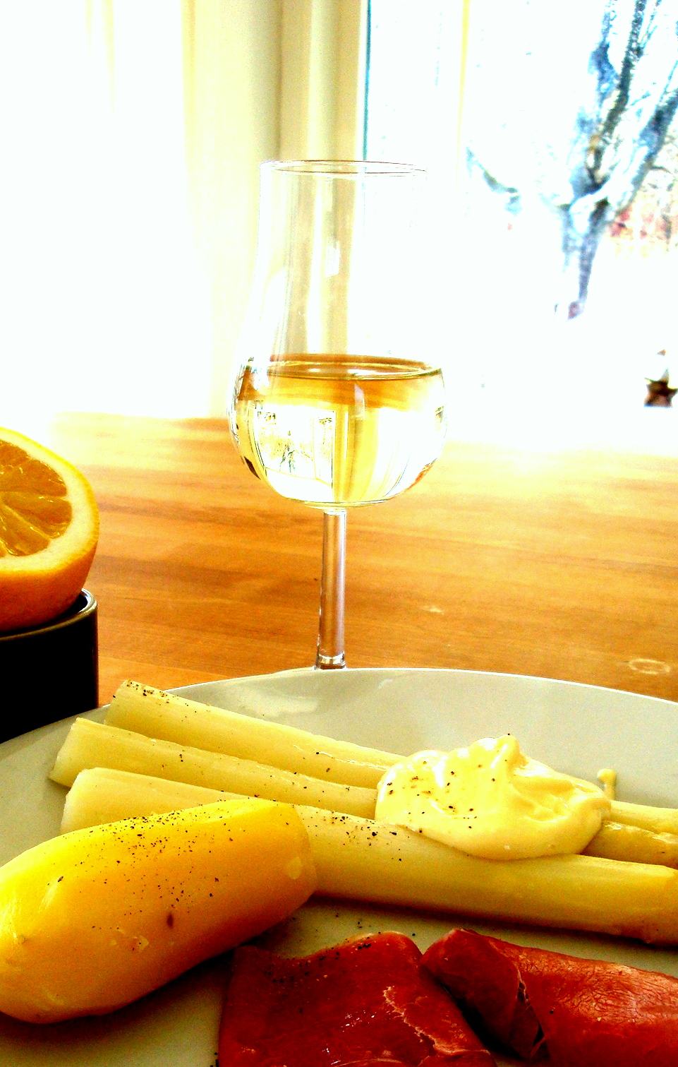 När vi bodde i Schweiz var April sparrismånaden. Alla restauranger ändrade menyerna, man tävlade i att skala sparris, ja en ända sparrisyra. Och de bara smälte i munnen. Här har jag försökt och försökt, men det har bara blivit trådigt.